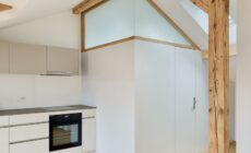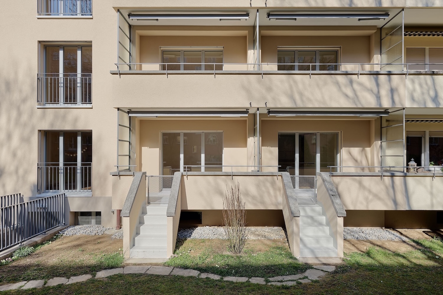 Das 5-geschossige Reihenwohnhaus an der Radarstrasse 7 in Bern wird komplettsaniert. Dies umfasst nebst einer vollumfassenden Fallstrang- und Gebäudehüllensanierung den Einbau zweier origineller Studiowohnungen im Dachgeschoss. Bedingt durch den Einbau eines Personenaufzugs über alle Geschosse werden Grundrissveränderungen vorgenommen, welche die Neupositionierung der Küchen begünstigt, die nun zum Wohnraum hin offenen sind. In den 2.5 bis 3-Zimmer-Etagenwohnungen werden Aspekte einer zeitgenössische Raumorganisation umgesetzt. Trotz der grossen Eingriffstiefe nehmen die neugestalteten Nasszellen, das stilvolle Treppenhaus und die vielfach erhaltene und ergänzte Ausstattung Bezug auf den ursprünglichen Gebäudecharakter aus der Erstellungszeit Ende der 1940er Jahre.